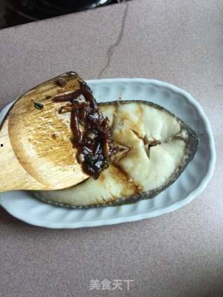 6. 蒸好的鳕鱼取出,淋上适量的生抽和食用油,撒上葱花即可。