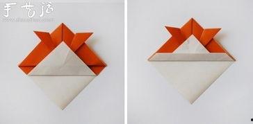 31. 将彩纸展开,沿着新的折痕将四个角向中心线折叠。
